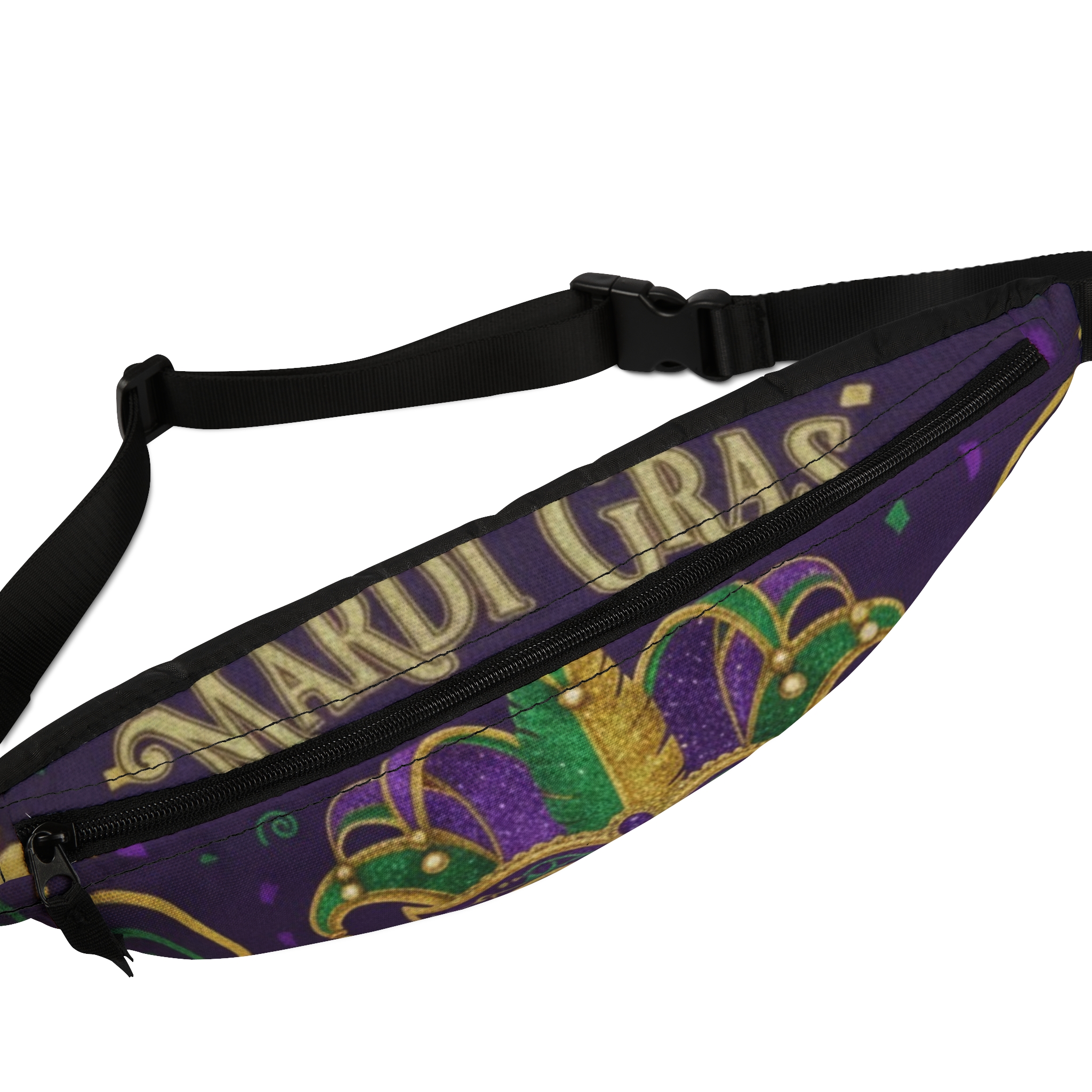Mardi Gras Mask Fanny Pack — Purple & Gold Carnival Waist Bag